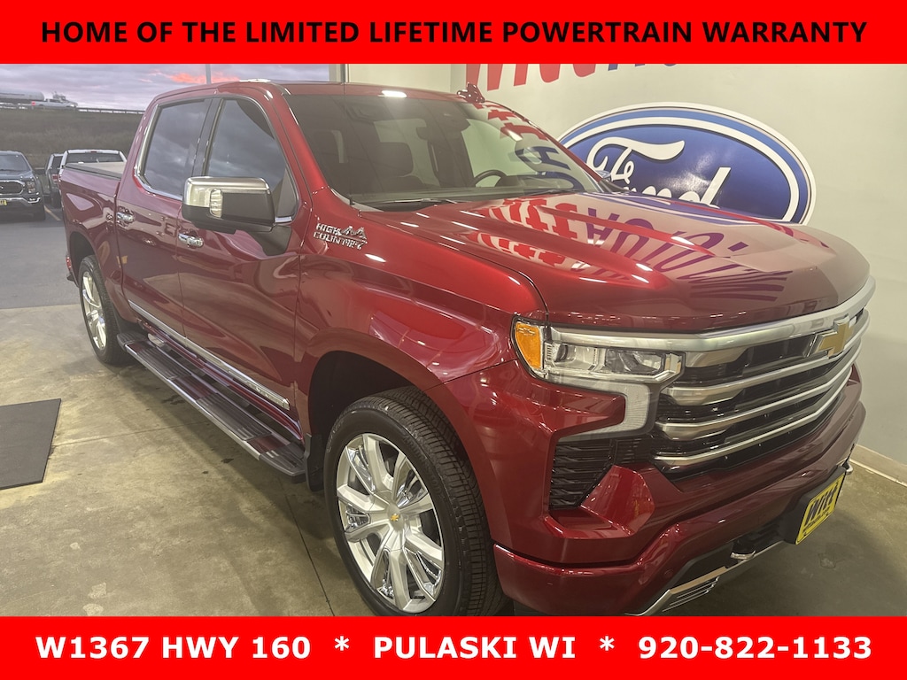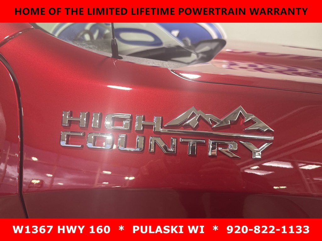 TECHNOLOGY PACKAGE includes (DRZ) Rear Camera Mirror and (UV6) 15" Diagonal Head-Up Display, SUSPENSION PACKAGE, ADAPTIVE RIDE CONTROL, HIGH COUNTRY PREMIUM PACKAGE includes (CF5) power sunroof, (RPT) 22" painted aluminum wheels with Chrome inserts, (XCE) 275/50R22SL all-season, blackwall tires and (RIA) floor liner, LPO , WHEELS, 22" X 9" (55.9 CM X 22.9 CM) PAINTED ALUMINUM with Chrome inserts, TRANSMISSION, 10-SPEED AUTOMATIC with Electronic Transmission Range Selector, (ETRS), electronically controlled with overdrive, tow/haul mode and steering column paddle shifters. Includes Cruise Grade Braking and Powertrain Grade Braking (STD), TIRES, 275/50R22SL ALL-SEASON, BLACKWALL, SUNROOF, POWER on Crew Cab models, SEATS, FRONT BUCKET with center console (STD) (Includes (EPH) Electronic Transmission Range Selector (console mounted).), REAR CAMERA MIRROR, INSIDE REARVIEW AUTO-DIMMING with full camera display, REAR AXLE, 3.23 RATIO.
