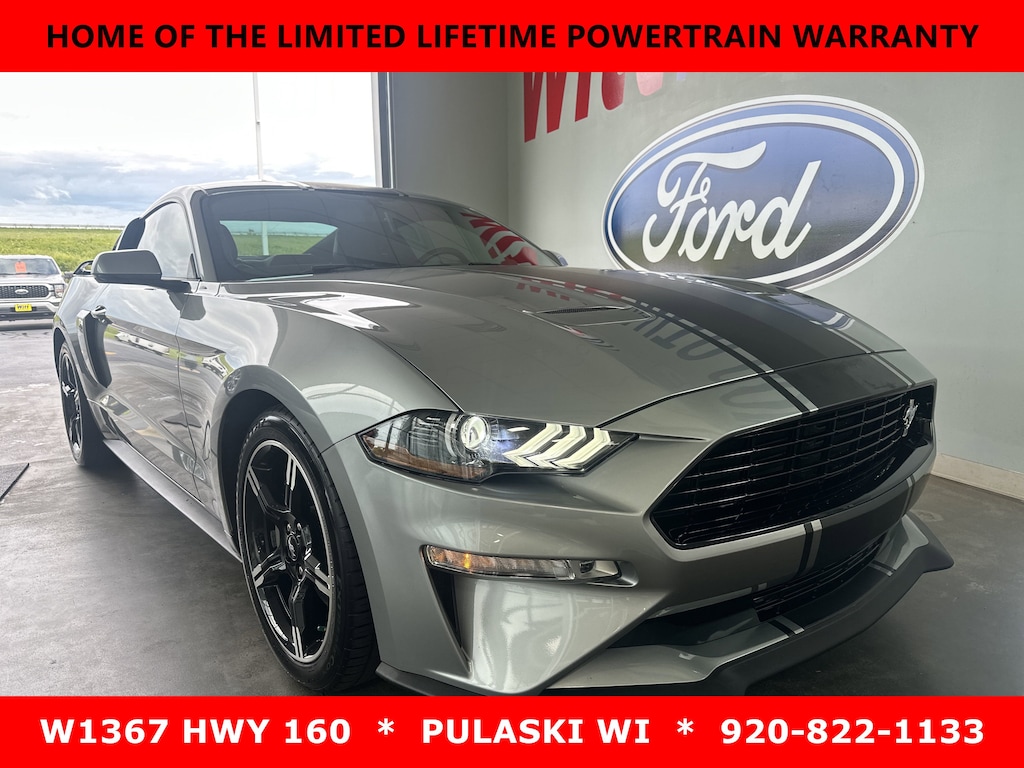 EQUIPMENT GROUP 401A -inc: Blind Spot Info System w/Cross-Traffic Alert, Premium Plus Package, Heated Steering Wheel, Premier Trim w/Color Accent Group, accent stitched center console lid, wrapped knee bolsters w/accent stitch, shifter boot, unique color-accented door trim and wrapped center console w/accent stitch, Premium Floor Mats w/Accent Stitch, Linked Graphite Aluminum Instrument Panel, 12" LCD Digital Instrument Cluster w/MyColor, Voice-Activated Touch-Screen Navigation System, pinch-to-zoom capability, SiriusXM Traffic and Travel Link (subscription required) w/a, SiriusXM audio and data services each require a subscription sold separately, or as a package, by SiriusXM Radio (subscription required) Inc, If you decide to continue service after your trial, the subscription plan you choose will automatically renew thereafter and you will be charged according to your chosen payment method at then-current rates, Fees and taxes apply, To cancel you must call SiriusXM at 1-866-635-2349, See SiriusXM cus, CALIFORNIA SPECIAL PACKAGE -inc: California special badge on strut tower brace, performance package front splitter and side scoops, Tires: 19", California Special Instrument Panel Applique Badge, California Special Script Rear Badging, Carbon Hex Aluminum Instrument Panel, Wheels: 19" x 8.5" Machined-Face Aluminum, high-gloss ebony black-painted pockets, Floor Mats w/Red Contrast Stitching, California special script logo, Unique Front Grilles w/Offset Tri-Bar Pony Logo, Miko Suede Door Inserts w/Red Contrast Stitching, Pedestal Rear Spoiler , WHEELS: 19" X 8.5" MACHINED-FACE ALUMINUM -inc: high-gloss ebony black-painted pockets, TRANSMISSION: 10-SPEED AUTOMATIC W/SELECTSHIFT -inc: steering wheel paddle shifters, Leather-Wrapped Shift Knob, Remote Start System, 3.15 Limited Slip Rear Axle Ratio, TIRES: 255/40R19 FR & 275/40R19 RR SUMMER-ONLY -inc: Designed to optimize driving dynamics and provide superior performance on wet and dry roads, High performance summer tires wear faster than non-performance tires, Ford does not recommend using summer tires when temperatures drop to approximately 45 deg F (7 deg C) or below or in snow/ice conditions, RADIO: B&O SOUND SYSTEM BY BANG & OLUFSEN -inc: CD player, 12-speakers and subwoofer in-trunk, HD Radio, ICONIC SILVER METALLIC, FRONT LICENSE PLATE BRACKET -inc: Standard in states where required by law, ENGINE: 5.0L TI-VCT V8 -inc: Port Fueled Direct Injection (PFDI) (STD), EBONY W/RED STITCH, LEATHER-TRIMMED BUCKET SEATS W/MIKO SUEDE INSERTS -inc: GT/CS logo and red contrast stitching.
