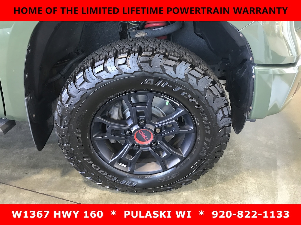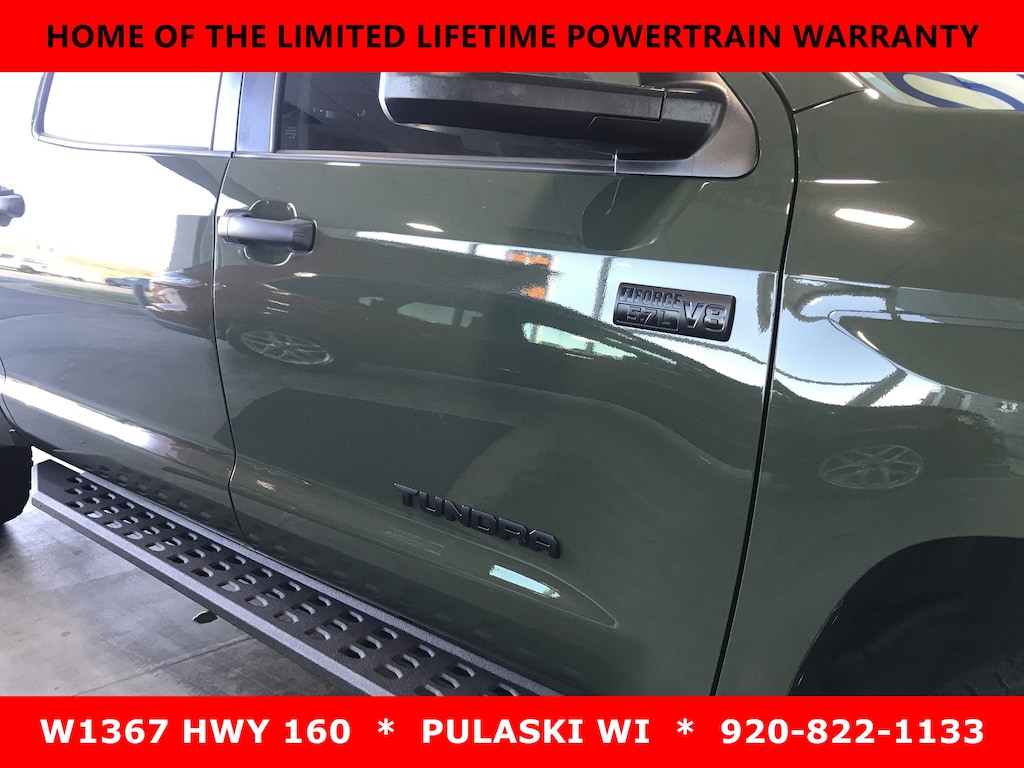 Variable Intermittent Wipers w/Heated Wiper Park, Turn-By-Turn Navigation Directions, Trip Computer, Transmission: Electronic 6-Speed Automatic -inc: intelligence (ECT-i), sequential shift mode, uphill/downhill shift logic and TOW/HAUL mode, Transmission w/Driver Selectable Mode and Oil Cooler, Trailer Wiring Harness, Tires: P275/65R18 AT, Tailgate Rear Cargo Access, Steel Spare Wheel, Splash Guards. This Toyota Tundra 4WD has a powerful Regular Unleaded V-8 5.7 L/346 engine powering this Automatic transmission.